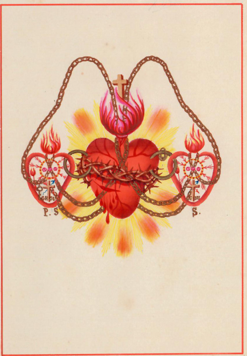 Sulla destra del Cuore di Gesù vi è un cuore identico, all’esterno e all’interno, al cuore del Padre Spirituale, ma sotto vi è una “S”, a dire che è il cuore della “serafina”, cioè di colei che sta camminando lungo il sentiero delle Divine Meraviglie del Cuore di Gesù.